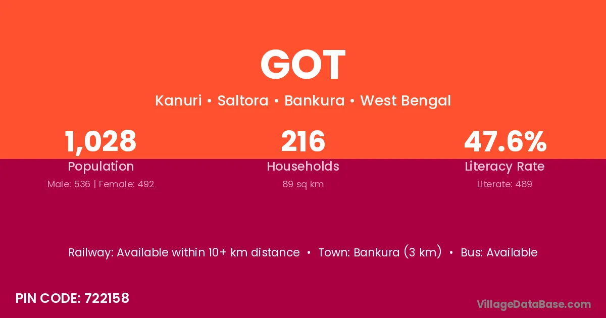 Bankura (3 km) is the nearest town to Got village for major economic activities and is located approximately 3 km away.