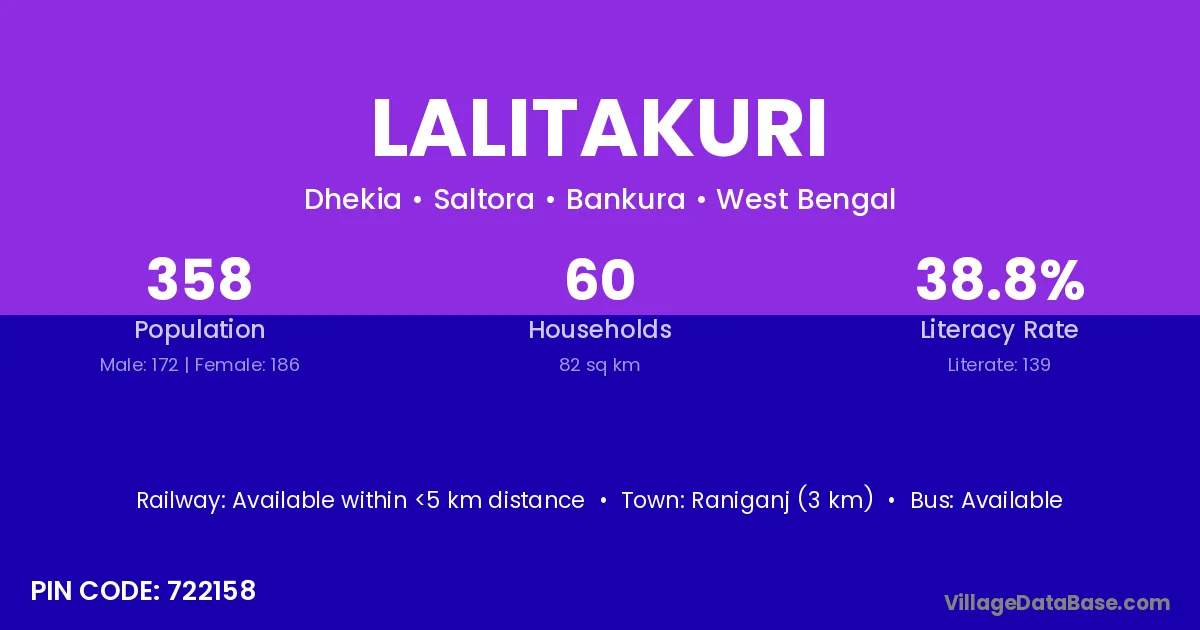 Raniganj (3 km) is the nearest town to Lalitakuri village for major economic activities and is located approximately 3 km away.