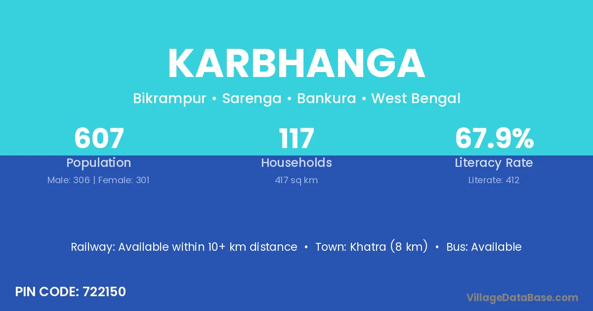 Khatra (8 km) is the nearest town to Karbhanga village for major economic activities and is located approximately 8 km away.