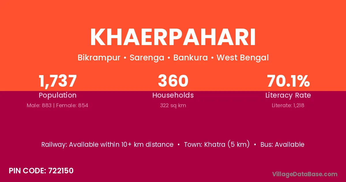 Khatra (5 km) is the nearest town to Khaerpahari village for major economic activities and is located approximately 5 km away.