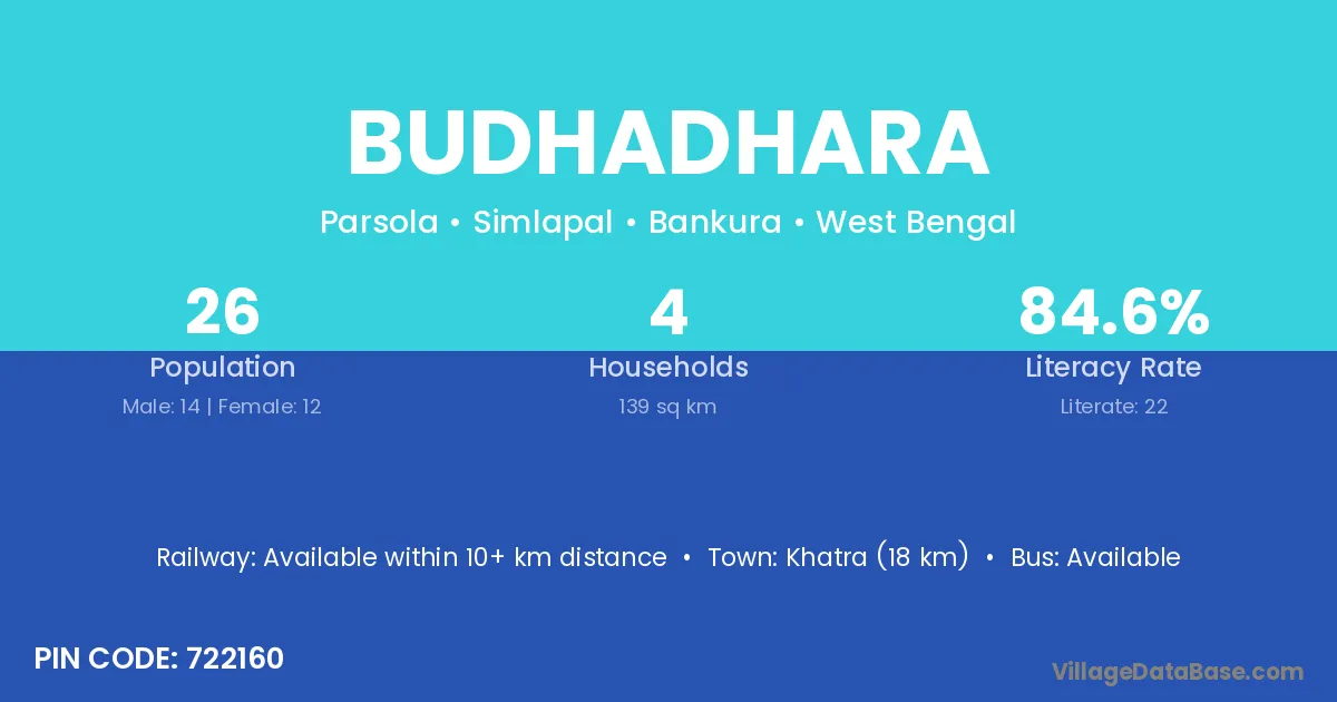 Khatra (18 km) is the nearest town to Budhadhara village for major economic activities and is located approximately 18 km away.