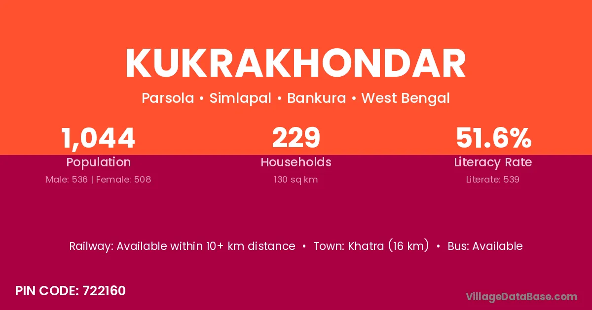 Khatra (16 km) is the nearest town to Kukrakhondar village for major economic activities and is located approximately 16 km away.