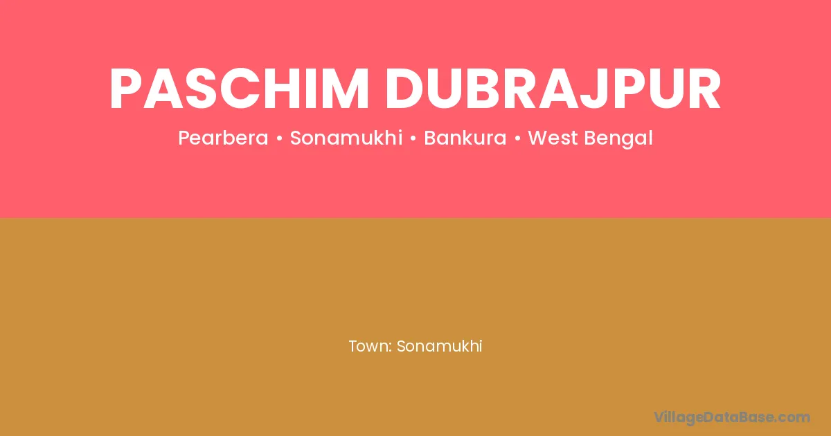 Sonamukhi is the nearest town to Paschim Dubrajpur village for major economic activities