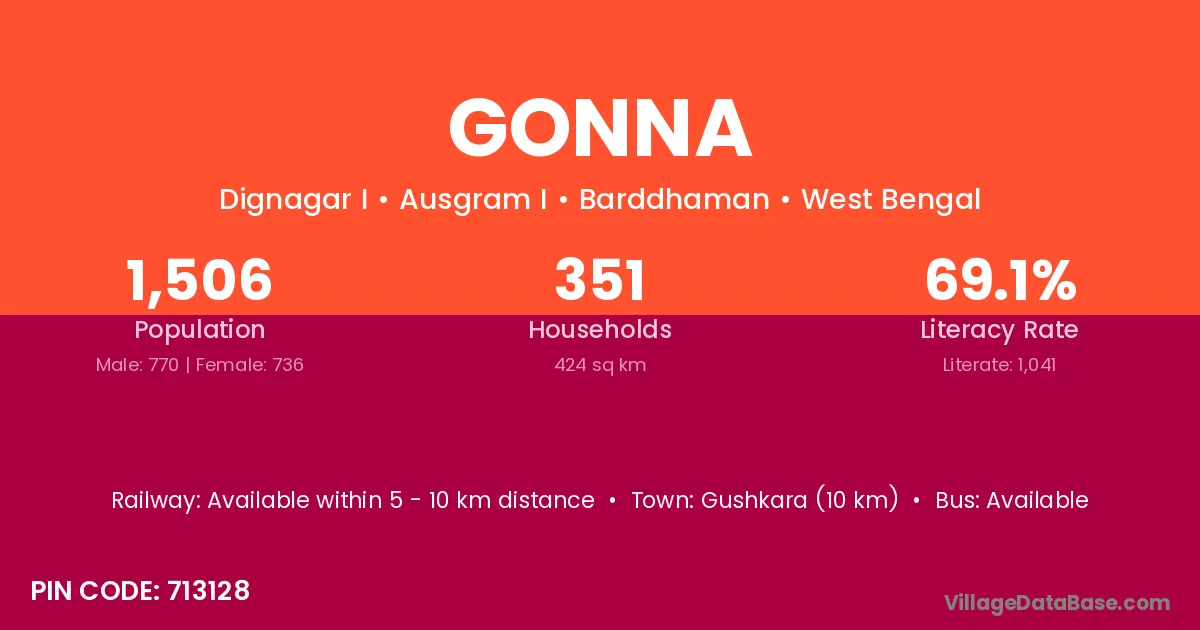 According to Census 2011 information, the village code of Gonna village is 713128.