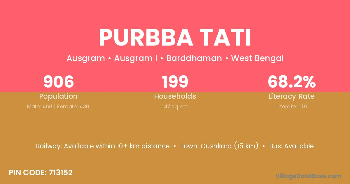 According to Census 2011 information, the village code of Purbba Tati village is 713152.
