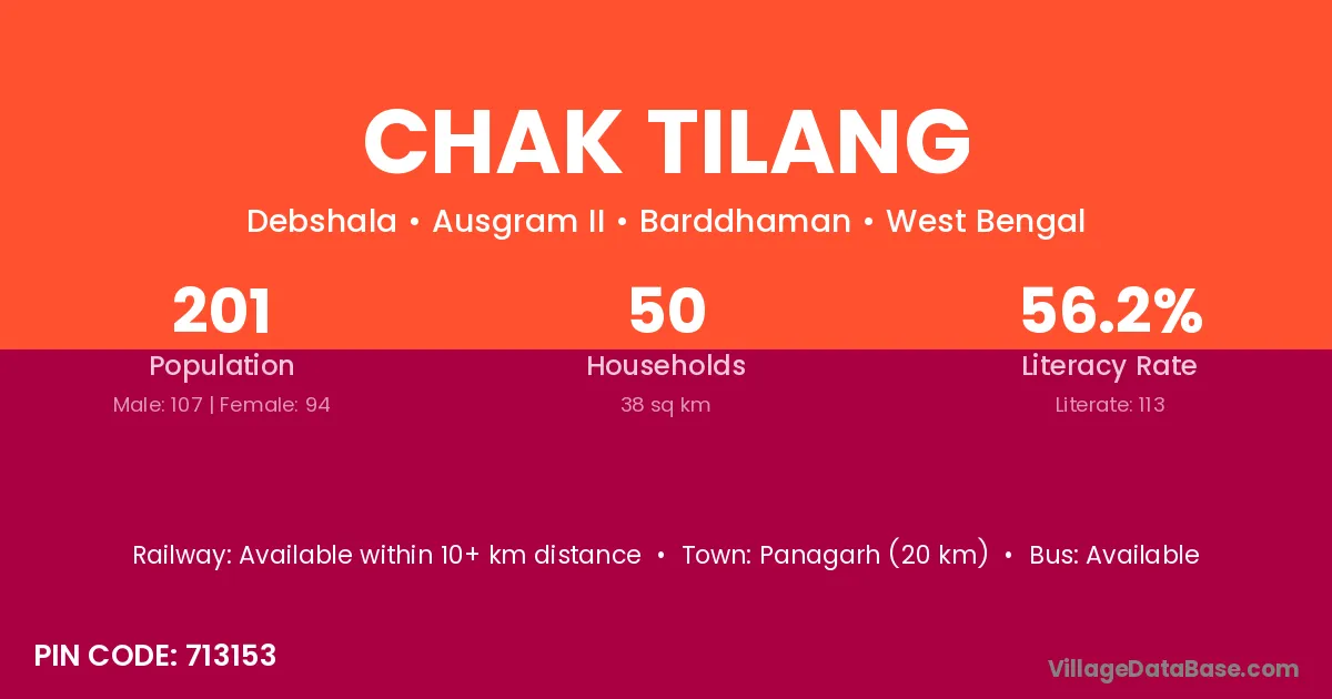 Panagarh (20 km) is the nearest town to Chak Tilang village for major economic activities and is located approximately 20 km away.