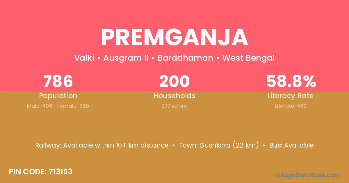 Gushkara (22 km) is the nearest town to Premganja village for major economic activities and is located approximately 22 km away.
