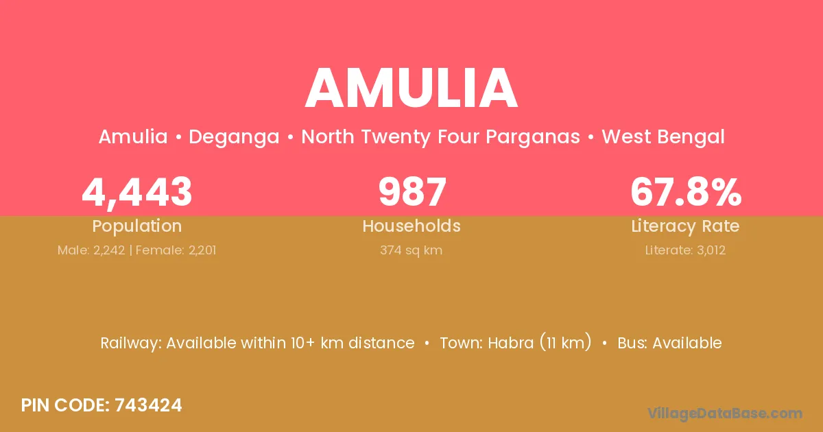 Asansol (27 km) is the nearest town to Amulia village for major economic activities and is located approximately 27 km away.