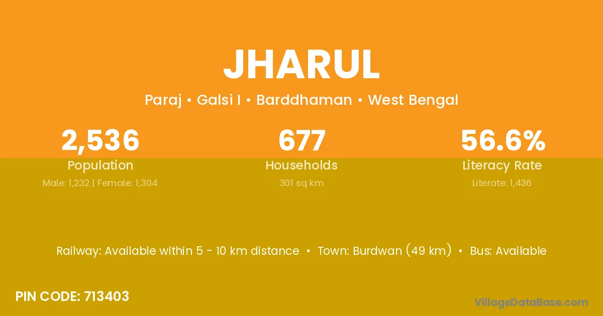 According to Census 2011 information, the village code of Jharul village is 713403.
