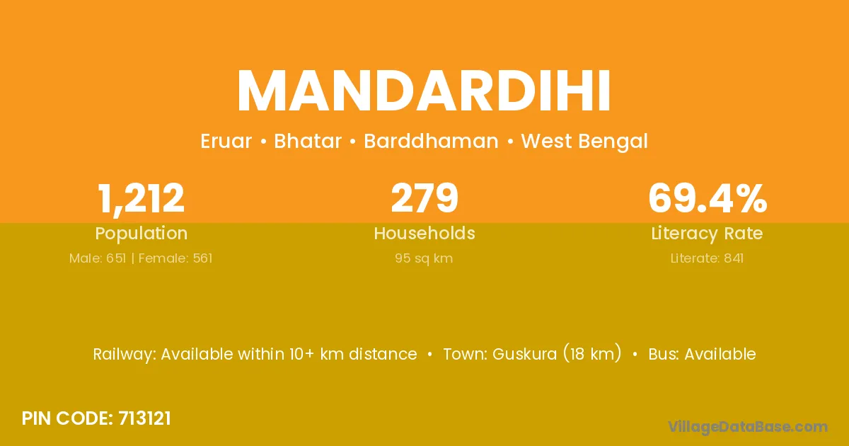 Guskura (18 km) is the nearest town to Mandardihi village for major economic activities and is located approximately 18 km away.