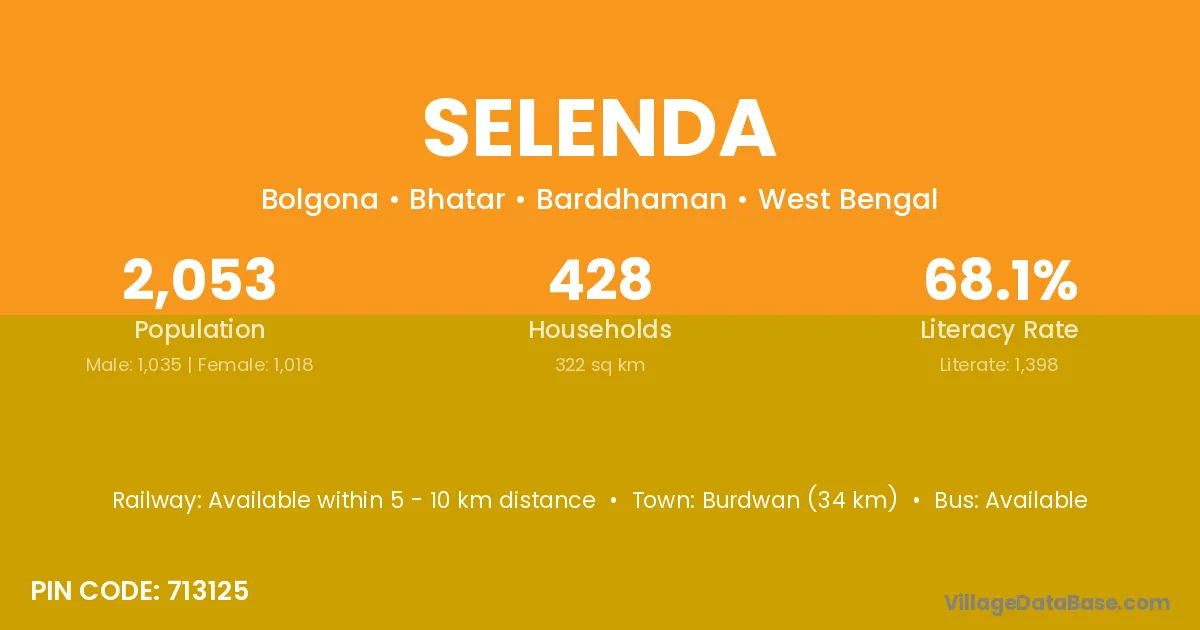 Burdwan (34 km) is the nearest town to Selenda village for major economic activities and is located approximately 34 km away.