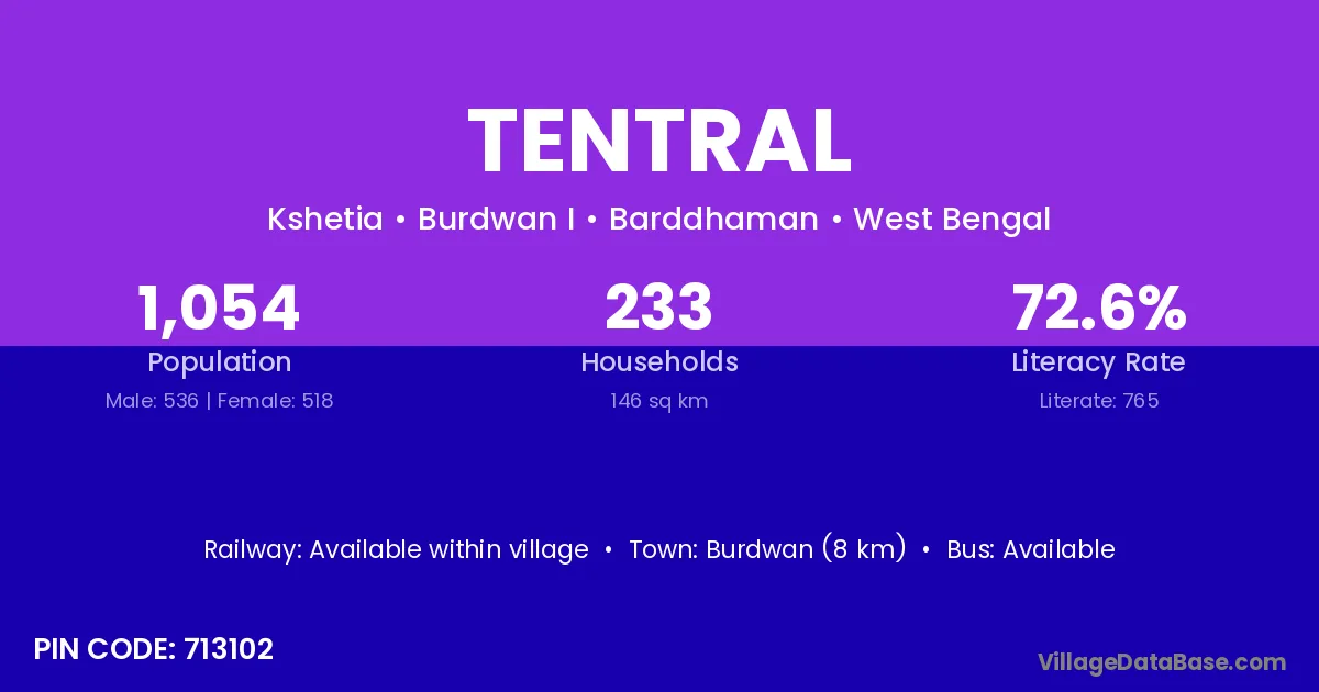 Burdwan (8 km) is the nearest town to Tentral village for major economic activities and is located approximately 8 km away.
