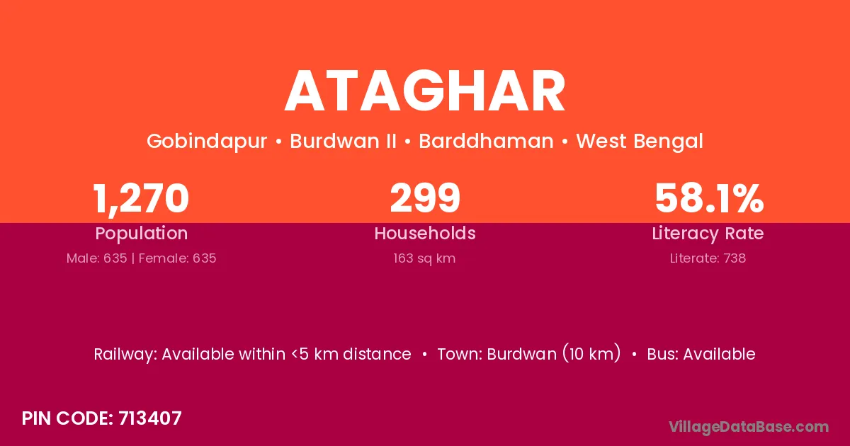 Burdwan (10 km) is the nearest town to Ataghar village for major economic activities and is located approximately 10 km away.