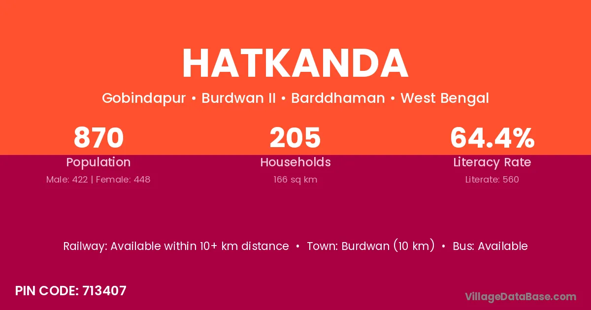 Burdwan (10 km) is the nearest town to Hatkanda village for major economic activities and is located approximately 10 km away.