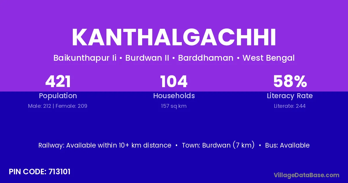 Burdwan (7 km) is the nearest town to Kanthalgachhi village for major economic activities and is located approximately 7 km away.
