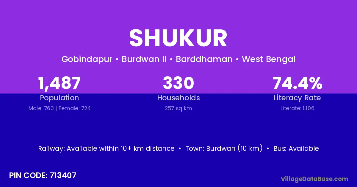 Burdwan (10 km) is the nearest town to Shukur village for major economic activities and is located approximately 10 km away.
