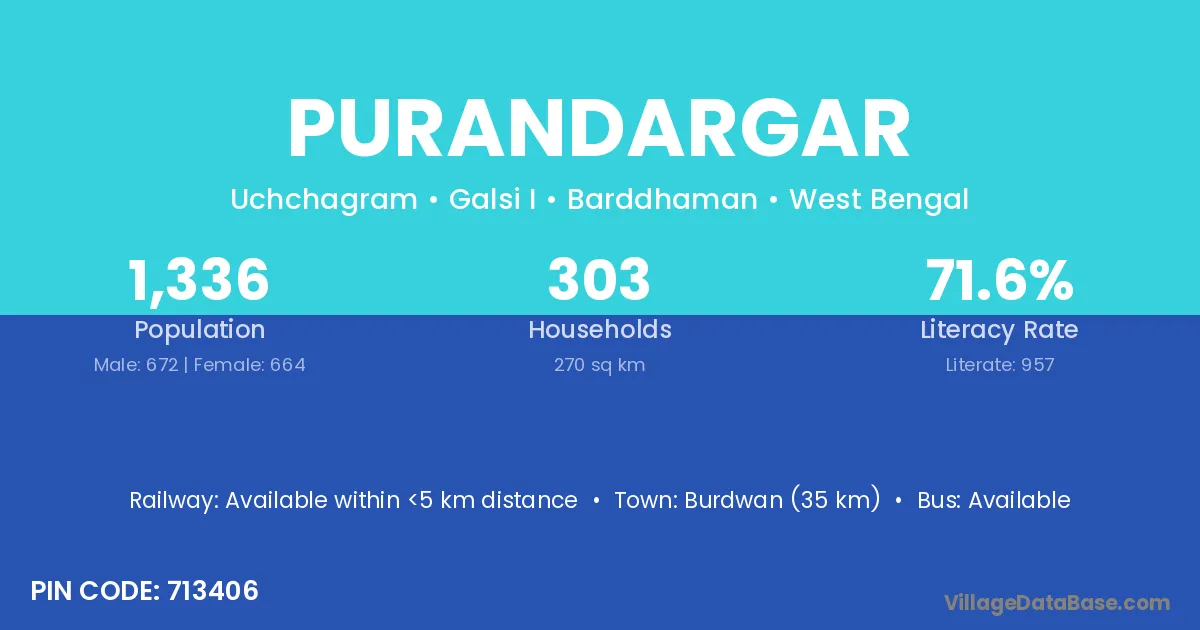 Burdwan (35 km) is the nearest town to Purandargar village for major economic activities and is located approximately 35 km away.