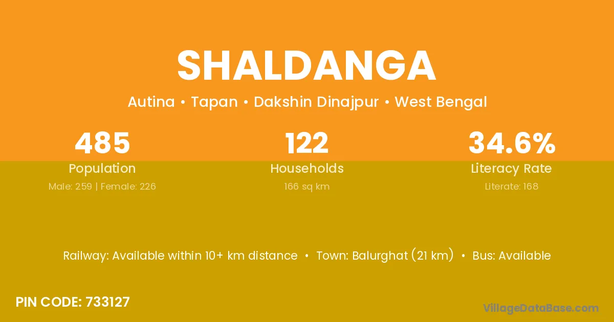 Durgapur (26 km) is the nearest town to Shaldanga village for major economic activities and is located approximately 26 km away.