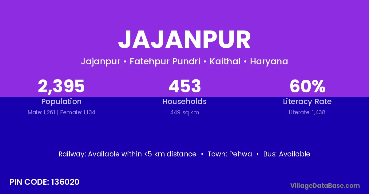 The literacy rate of Jajanpur village is 61.15%. Male literacy stands at 68.48% and female literacy at 53.31%.