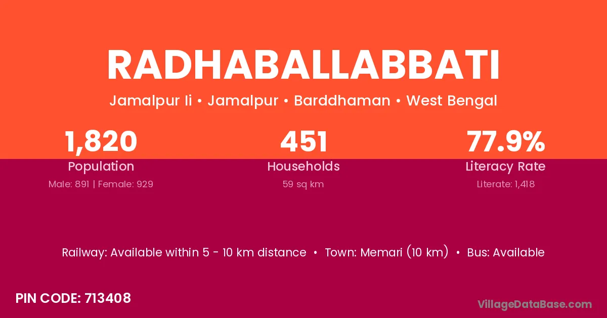 Memari (10 km) is the nearest town to Radhaballabbati village for major economic activities and is located approximately 10 km away.