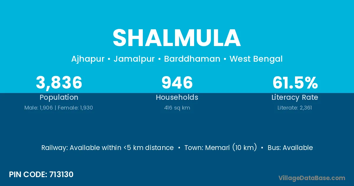 According to Census 2011 information, the village code of Shalmula village is 713130.