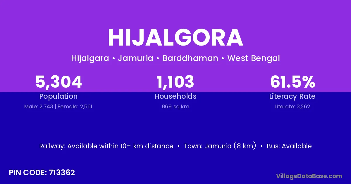 According to Census 2011 information, the village code of Hijalgora village is 713362.