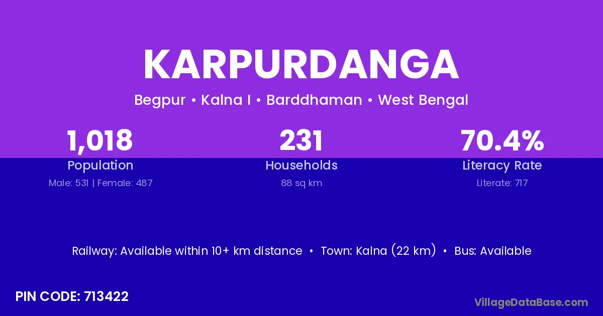 Kalna (22 km) is the nearest town to Karpurdanga village for major economic activities and is located approximately 22 km away.