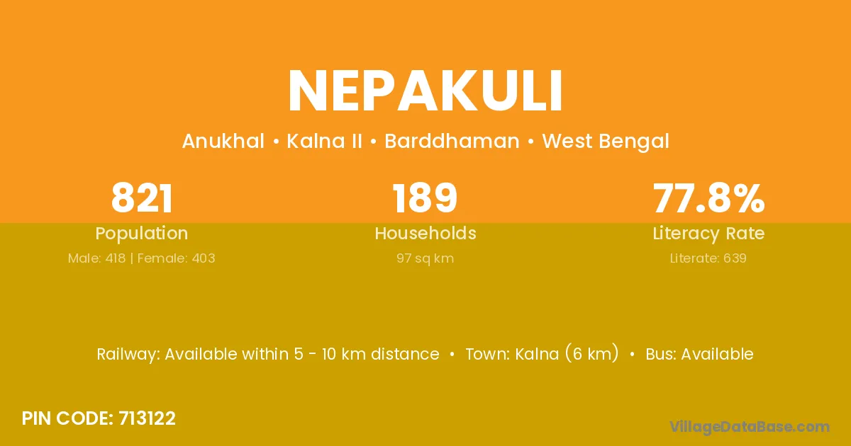 According to Census 2011 information, the village code of Nepakuli village is 713122.