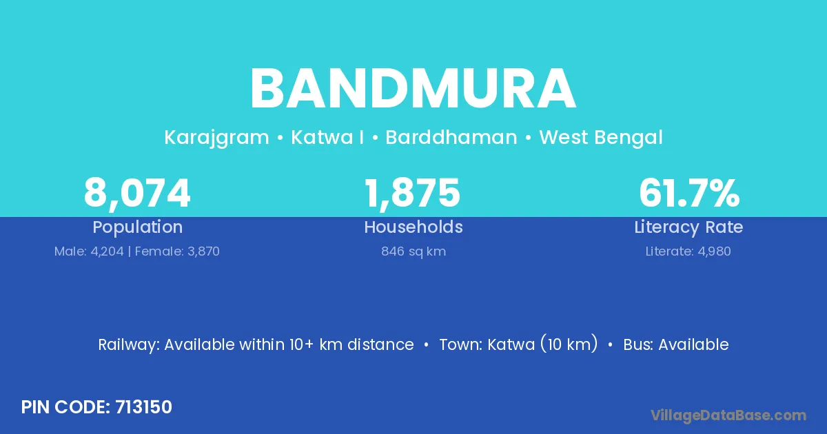 Katwa (10 km) is the nearest town to Bandmura village for major economic activities and is located approximately 10 km away.