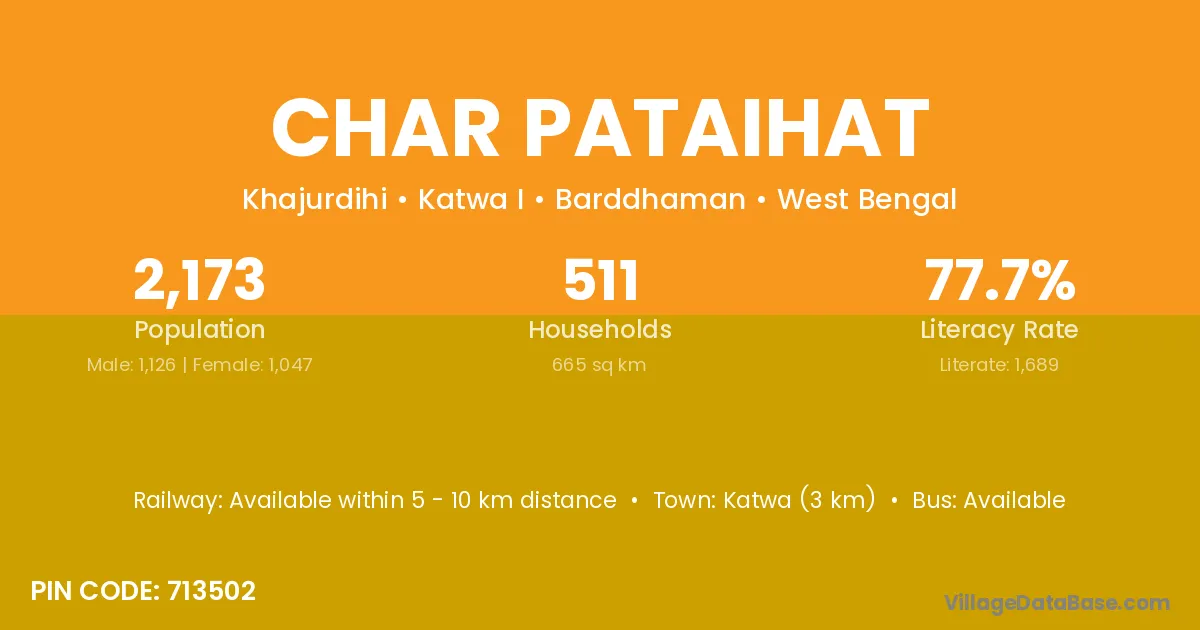 Katwa (3 km) is the nearest town to Char Pataihat village for major economic activities and is located approximately 3 km away.