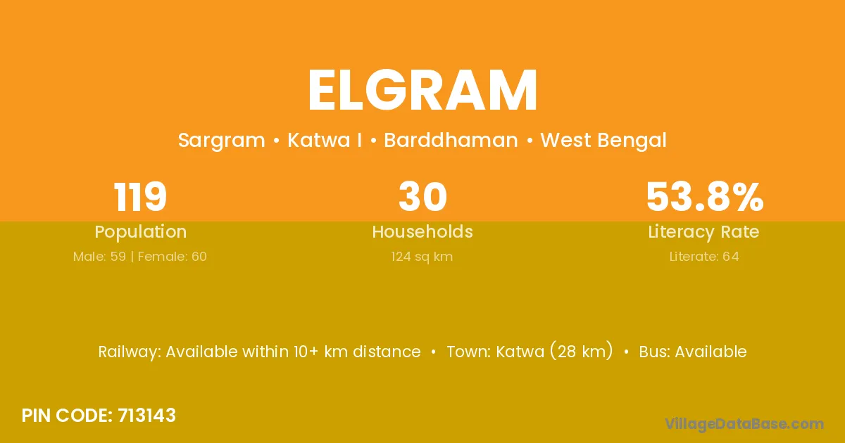 Katwa (28 km) is the nearest town to Elgram village for major economic activities and is located approximately 28 km away.