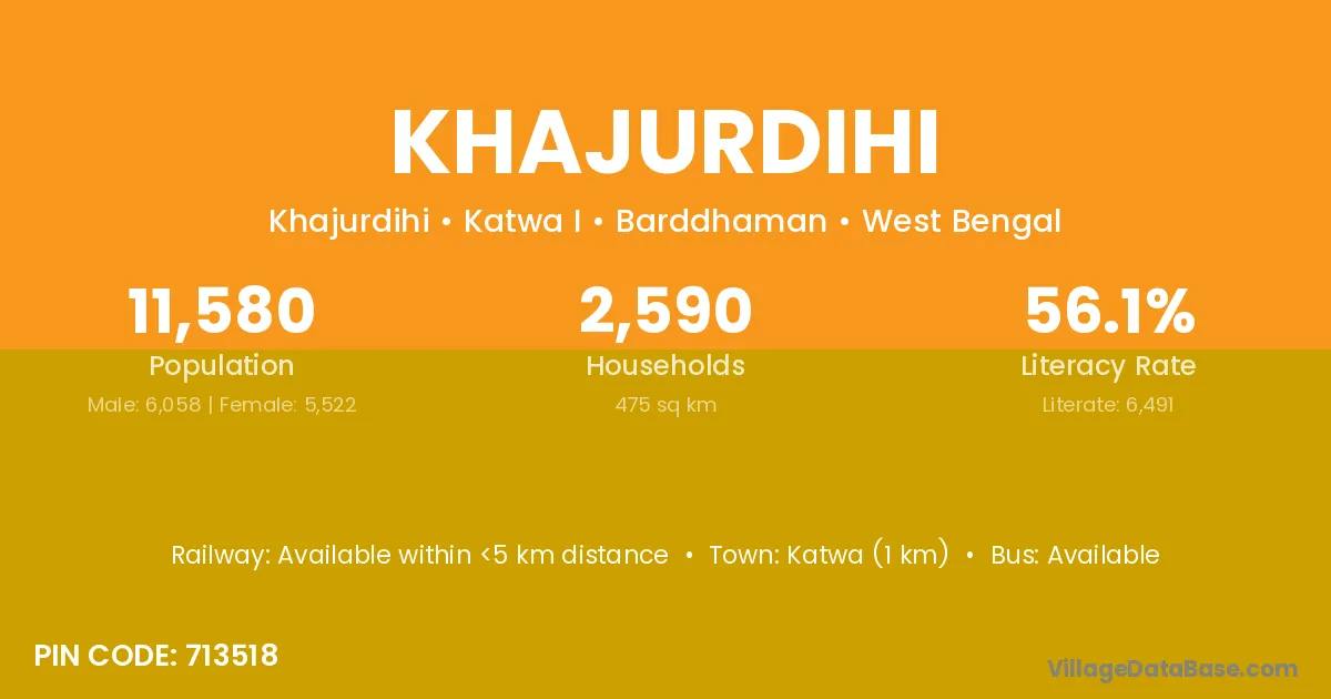Katwa (1 km) is the nearest town to Khajurdihi village for major economic activities and is located approximately 1 km away.