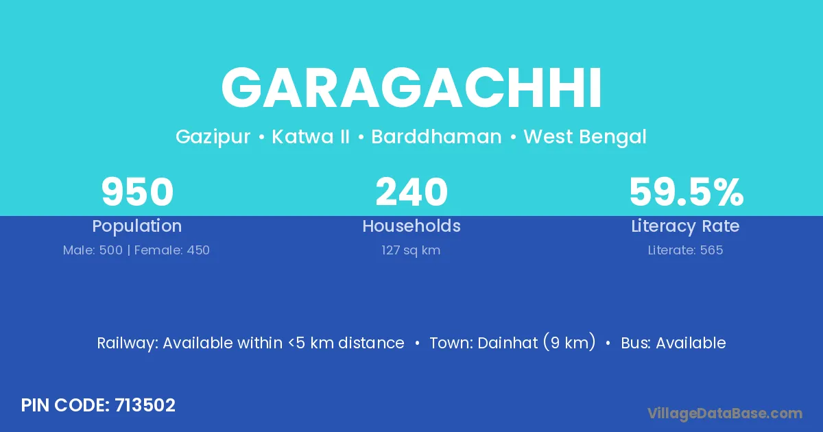 According to Census 2011 information, the village code of Garagachhi village is 713502.