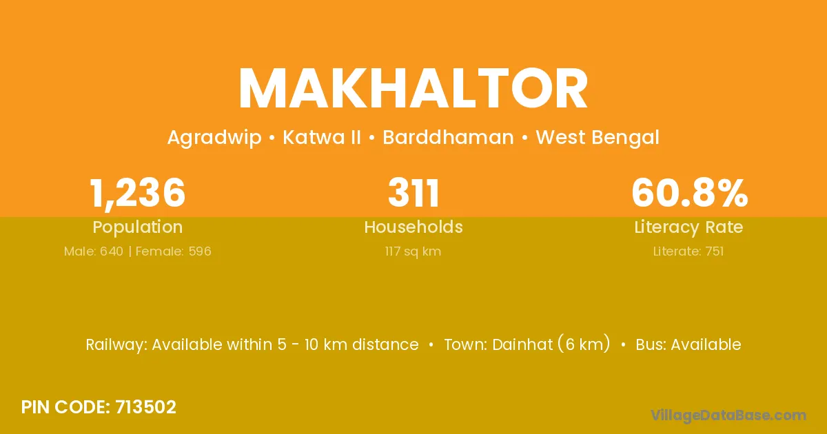 According to Census 2011 information, the village code of Makhaltor village is 713502.