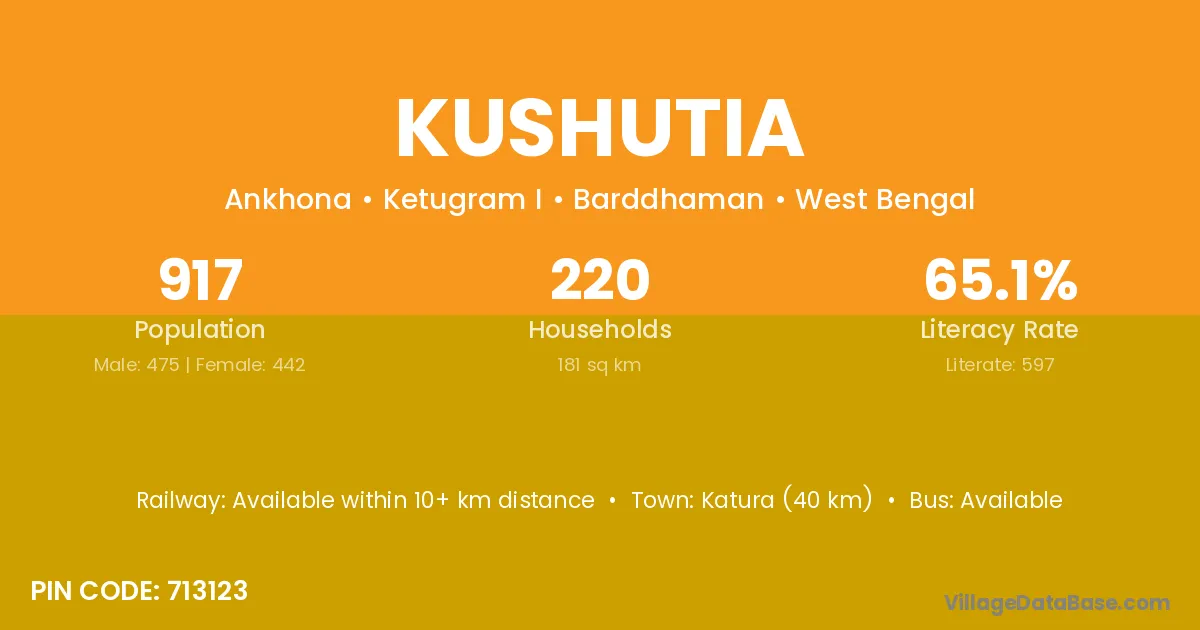 According to Census 2011 information, the village code of Kushutia village is 713123.
