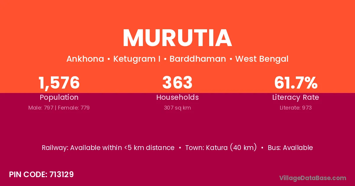 According to Census 2011 information, the village code of Murutia village is 713129.