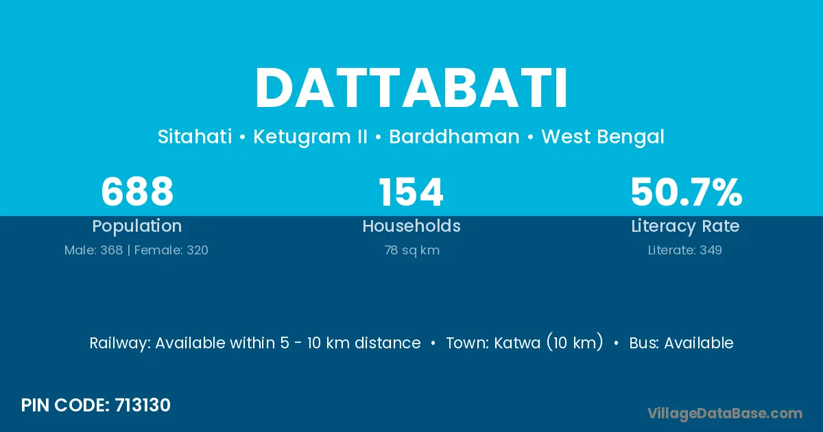 Katwa (10 km) is the nearest town to Dattabati village for major economic activities and is located approximately 10 km away.