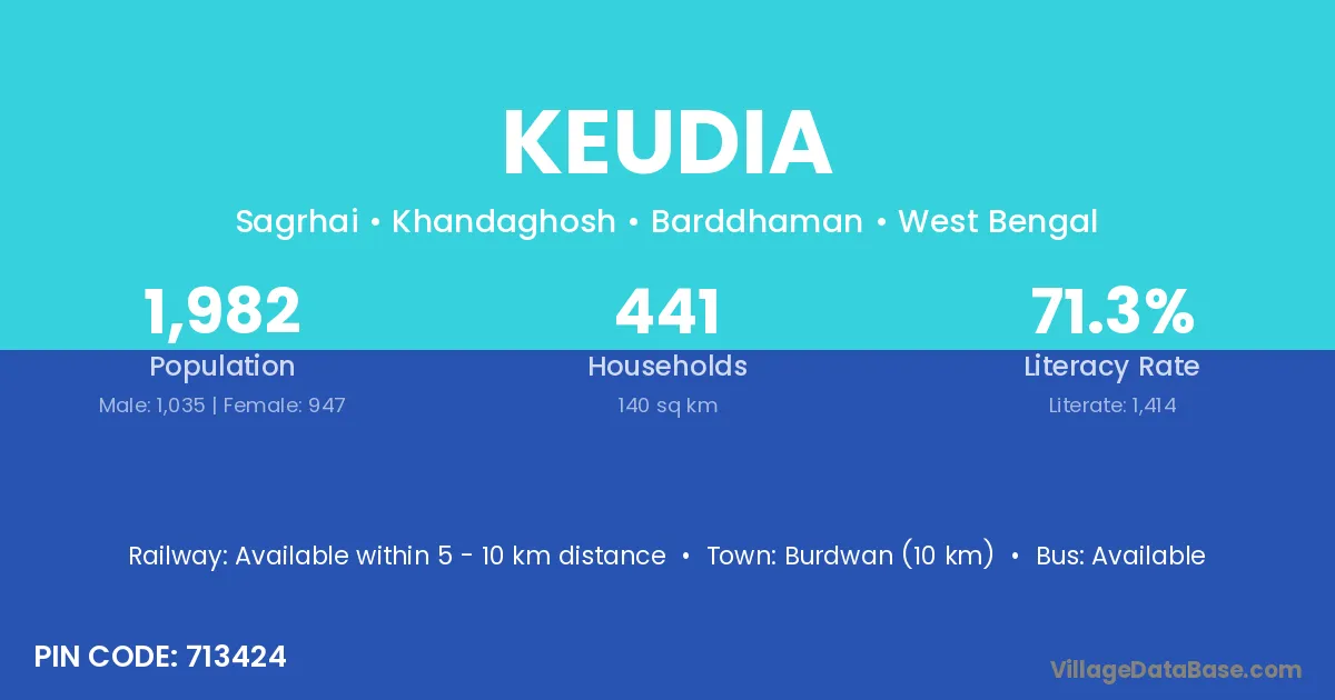 Burdwan (10 km) is the nearest town to Keudia village for major economic activities and is located approximately 10 km away.
