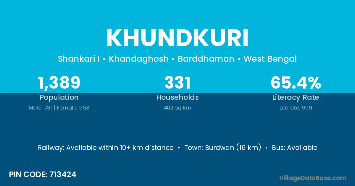 Burdwan (16 km) is the nearest town to Khundkuri village for major economic activities and is located approximately 16 km away.