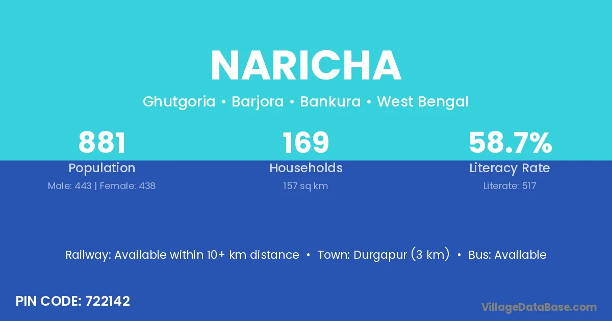 Burdwan (25 km) is the nearest town to Naricha village for major economic activities and is located approximately 25 km away.