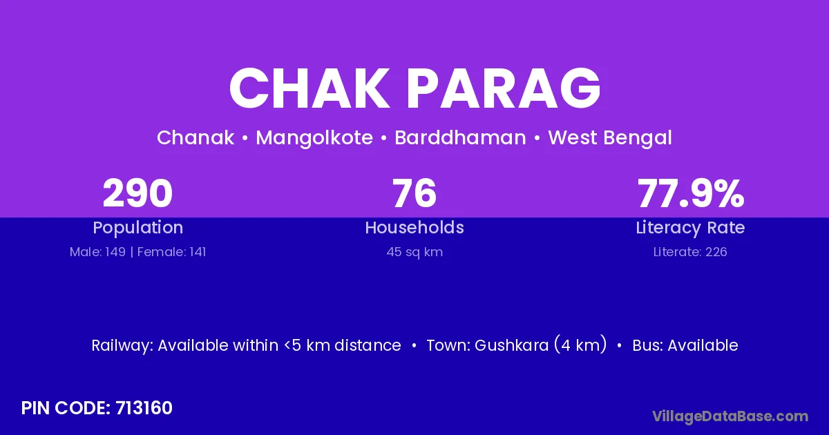 Gushkara (4 km) is the nearest town to Chak Parag village for major economic activities and is located approximately 4 km away.
