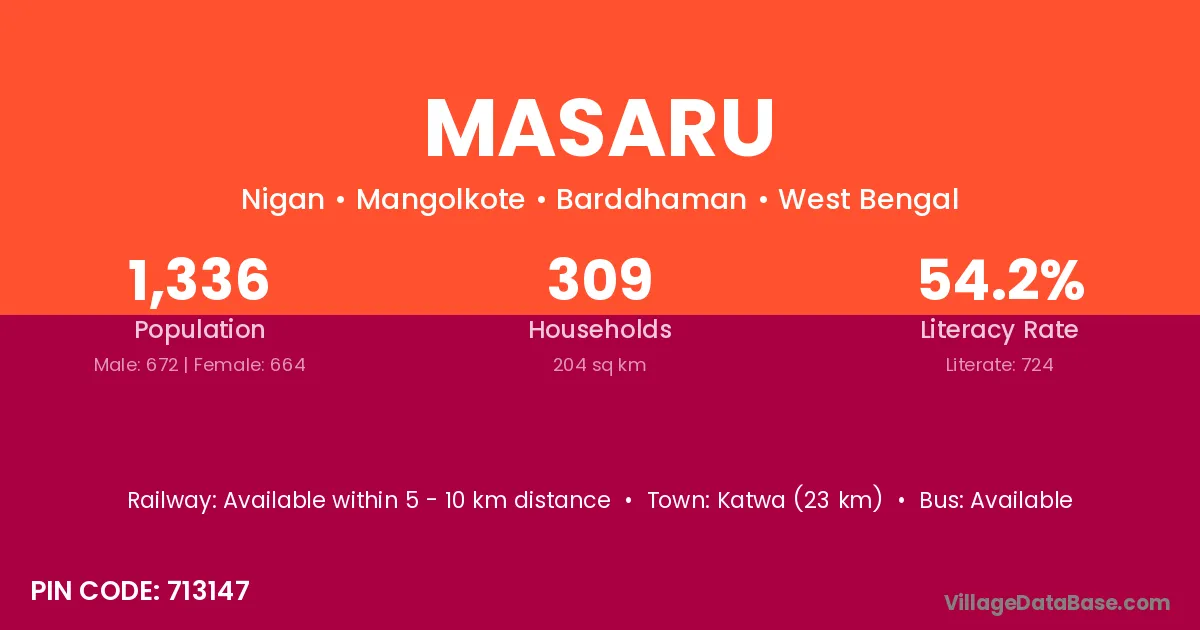 Katwa (23 km) is the nearest town to Masaru village for major economic activities and is located approximately 23 km away.