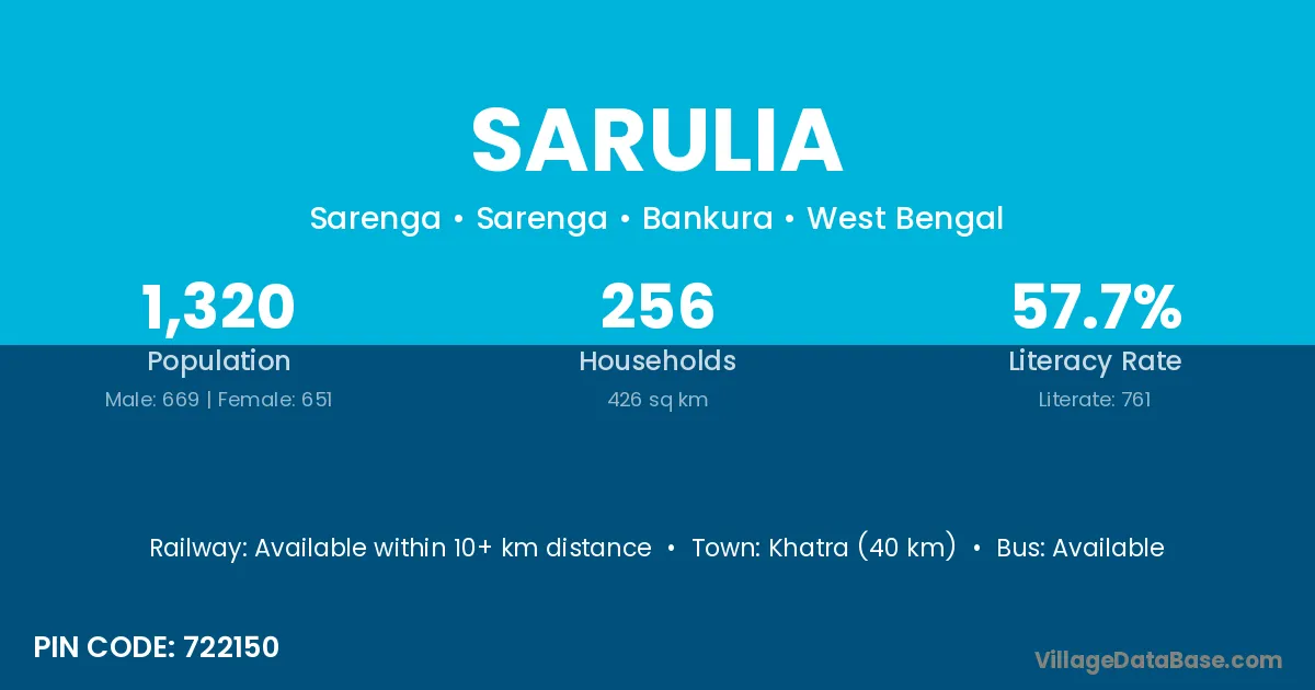 According to Census 2011 information, the village code of Sarulia village is 713128.