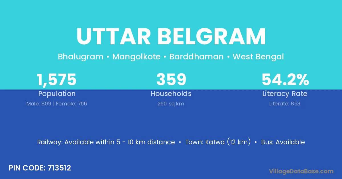 Katwa (12 km) is the nearest town to Uttar Belgram village for major economic activities and is located approximately 12 km away.