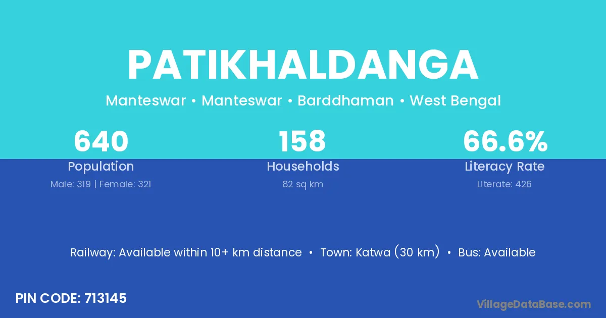 Katwa (30 km) is the nearest town to Patikhaldanga village for major economic activities and is located approximately 30 km away.