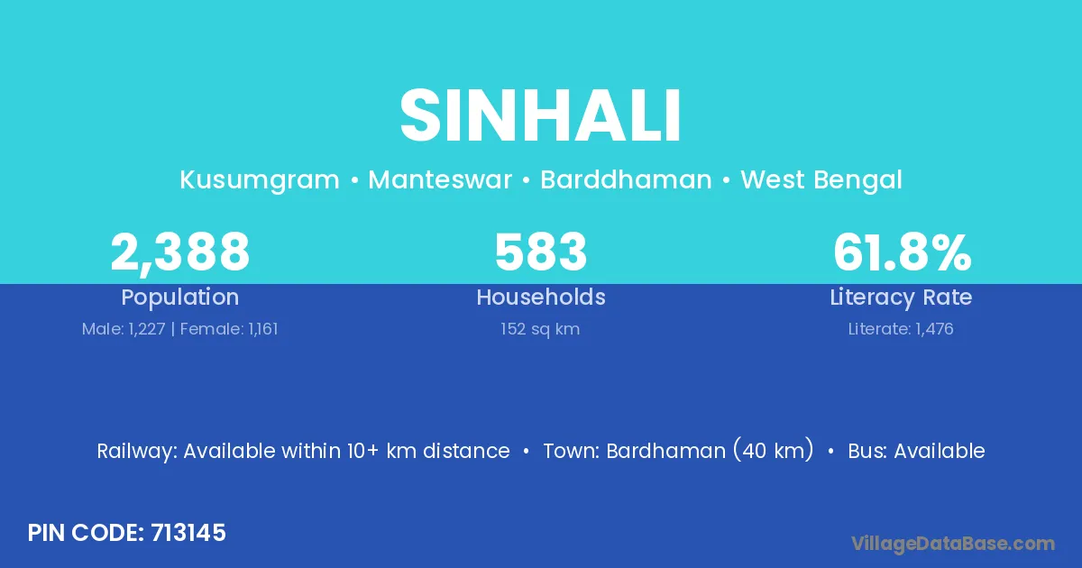 Bardhaman (40 km) is the nearest town to Sinhali village for major economic activities and is located approximately 40 km away.