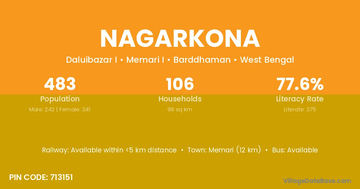 Memari (12 km) is the nearest town to Nagarkona village for major economic activities and is located approximately 12 km away.