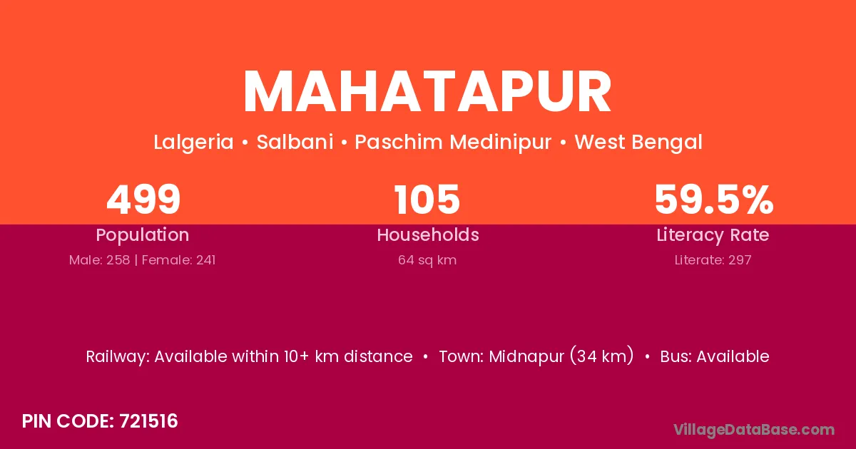 Nabadwip (5 km) is the nearest town to Mahatapur village for major economic activities and is located approximately 5 km away.