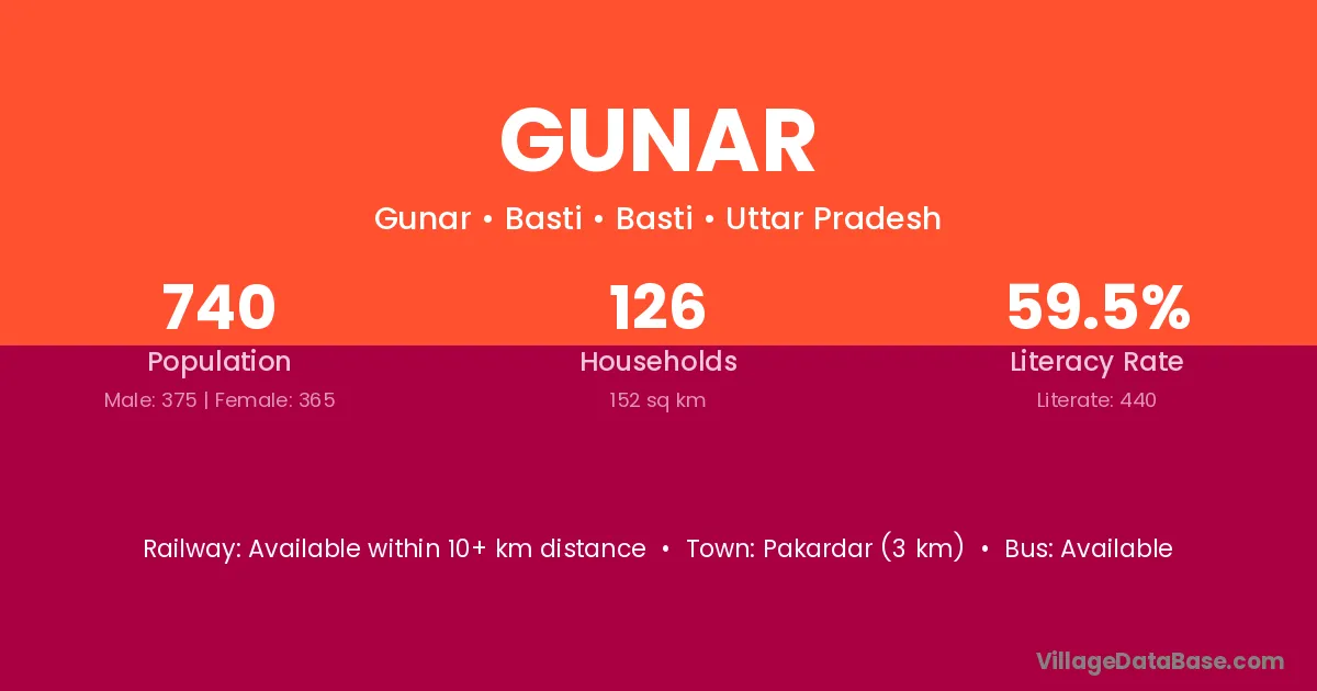Burdwan (32 km) is the nearest town to Gunar village for major economic activities and is located approximately 32 km away.