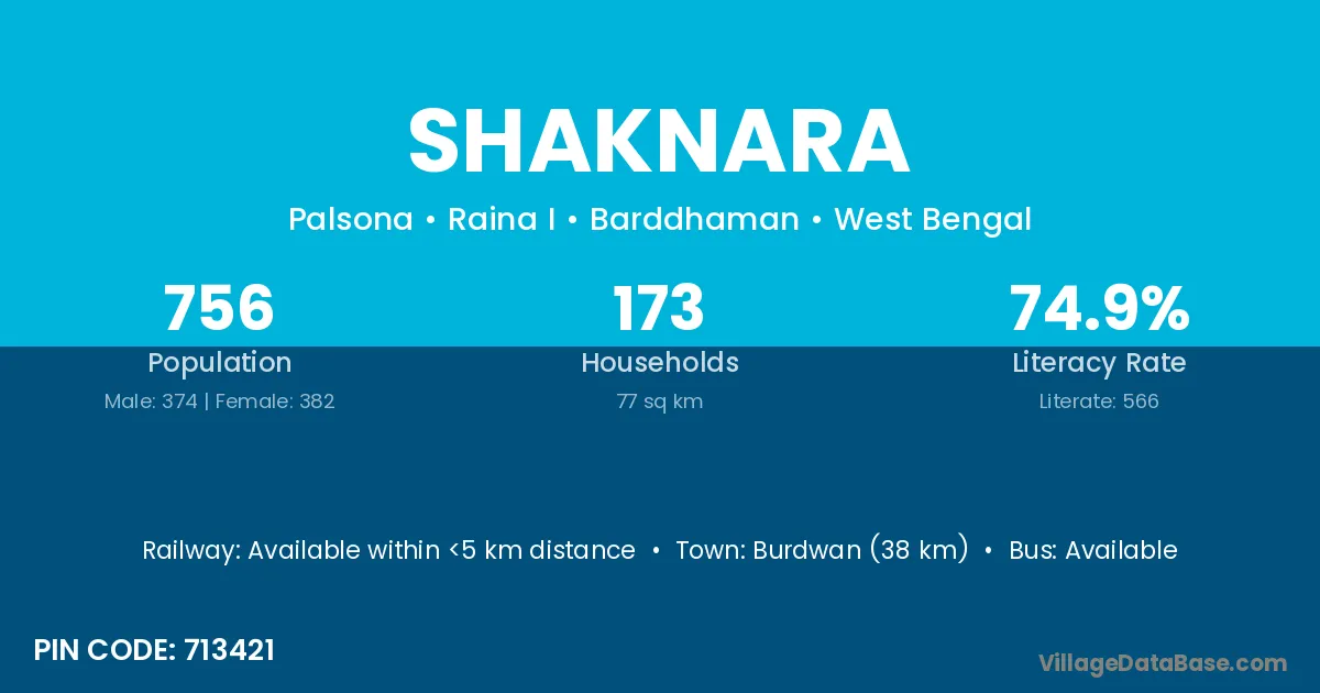 Burdwan (38 km) is the nearest town to Shaknara village for major economic activities and is located approximately 38 km away.